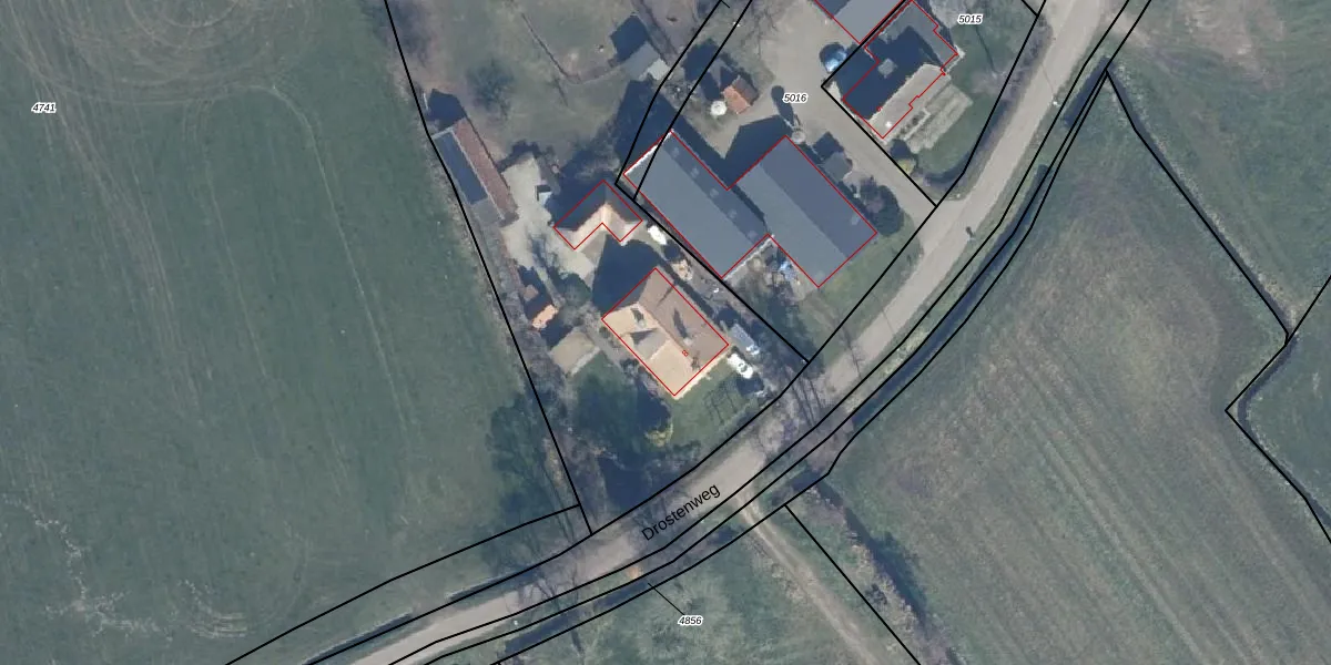 Het perceel waarop Drostenweg 8 staat heeft een oppervlakte van 5859 m². Dit is een zeer groot perceel. De perceeloppervlakte wordt geregistreerd door het Kadaster. Gedetailleerde informatie over de maten van dit perceel kunt u vinden in het rapport Kadastrale kaart met maatvoering van Drostenweg 8.