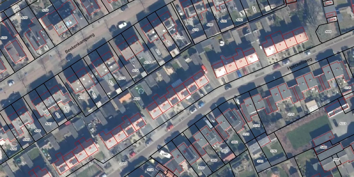 Het perceel waarop Hoeckelsweg 22 staat heeft een oppervlakte van 7063 m². Dit is een zeer groot perceel. De perceeloppervlakte wordt geregistreerd door het Kadaster. Gedetailleerde informatie over de maten van dit perceel kunt u vinden in het rapport Kadastrale kaart met maatvoering van Hoeckelsweg 22.