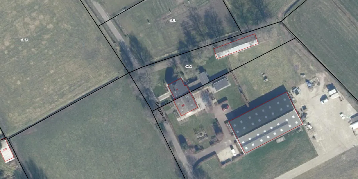 Koopsweg 5 is gelegen op kadastraal perceel DSK00D4654. Deze kadastrale aanduiding is uniek en wordt gebruikt door het Kadaster om eigendomsrechten en andere zakelijke rechten vast te leggen. Het perceel maakt onderdeel uit van de kadastrale gemeente Doornspijk.