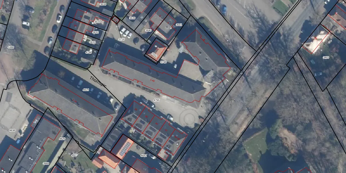 Het perceel waarop Thornspic 23 staat heeft een oppervlakte van 4268 m². Dit is een zeer groot perceel. De perceeloppervlakte wordt geregistreerd door het Kadaster. Gedetailleerde informatie over de maten van dit perceel kunt u vinden in het rapport Kadastrale kaart met maatvoering van Thornspic 23.