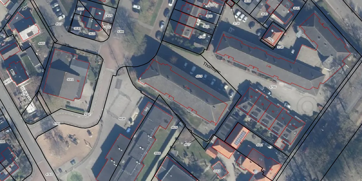Het perceel waarop Thornspic 28 staat heeft een oppervlakte van 1785 m². Dit is een zeer groot perceel. De perceeloppervlakte wordt geregistreerd door het Kadaster. Gedetailleerde informatie over de maten van dit perceel kunt u vinden in het rapport Kadastrale kaart met maatvoering van Thornspic 28.