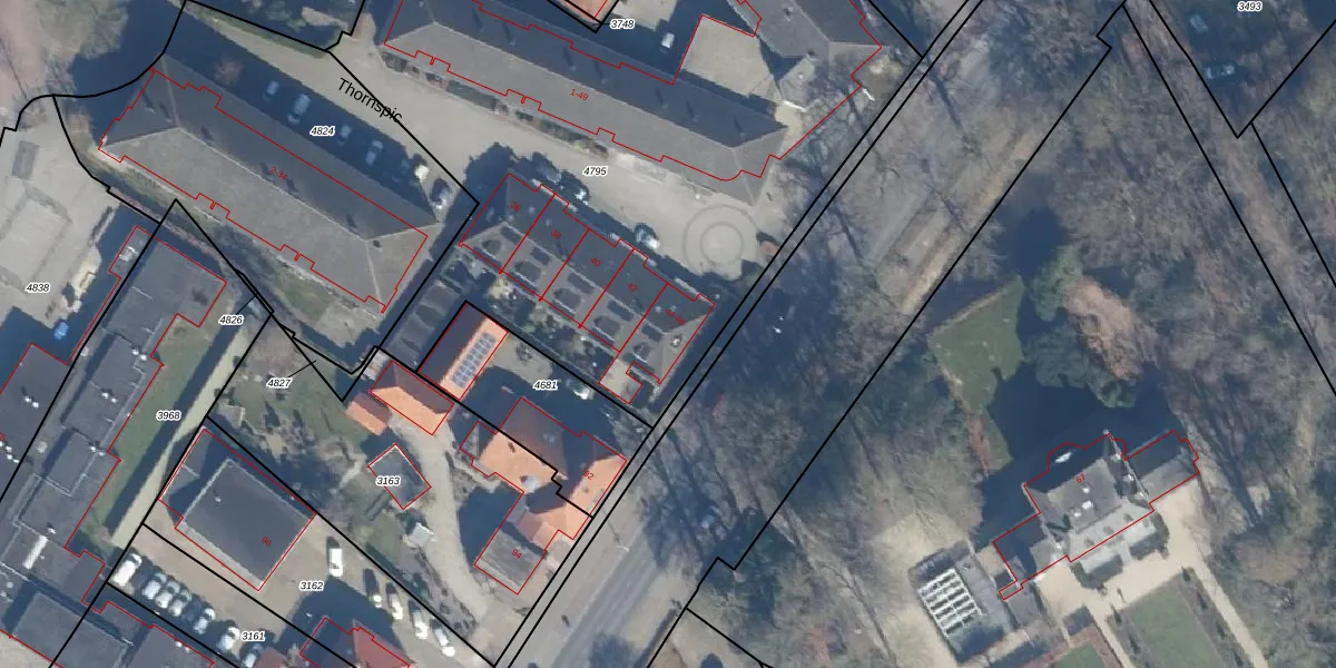 Het perceel waarop Thornspic 46 staat heeft een oppervlakte van 4268 m². Dit is een zeer groot perceel. De perceeloppervlakte wordt geregistreerd door het Kadaster. Gedetailleerde informatie over de maten van dit perceel kunt u vinden in het rapport Kadastrale kaart met maatvoering van Thornspic 46.