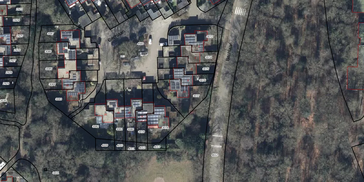 Gebruik de zoekbalk of klik op een perceel voor informatie over de adressen binnen dit perceel.