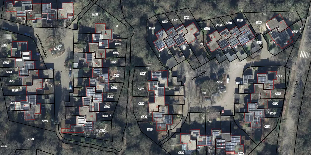 Gebruik de zoekbalk of klik op een perceel voor informatie over de adressen binnen dit perceel.