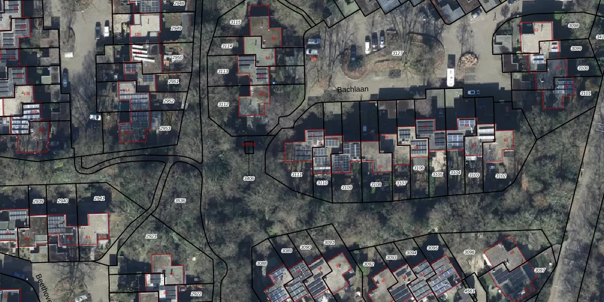 Het perceel waarop Bachlaan 78 staat heeft een oppervlakte van 375 m². Dit is een groot perceel. De perceeloppervlakte wordt geregistreerd door het Kadaster. Gedetailleerde informatie over de maten van dit perceel kunt u vinden in het rapport Kadastrale kaart met maatvoering van Bachlaan 78.