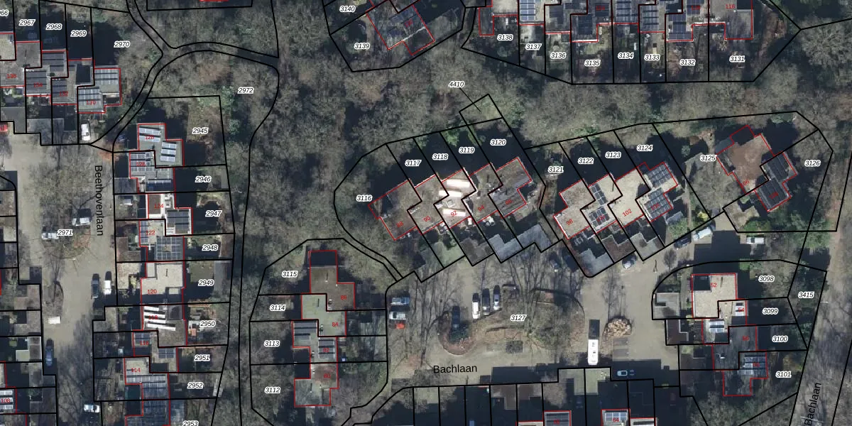Het perceel waarop Bachlaan 90 staat heeft een oppervlakte van 197 m². Dit is een middelgroot perceel. De perceeloppervlakte wordt geregistreerd door het Kadaster. Gedetailleerde informatie over de maten van dit perceel kunt u vinden in het rapport Kadastrale kaart met maatvoering van Bachlaan 90.