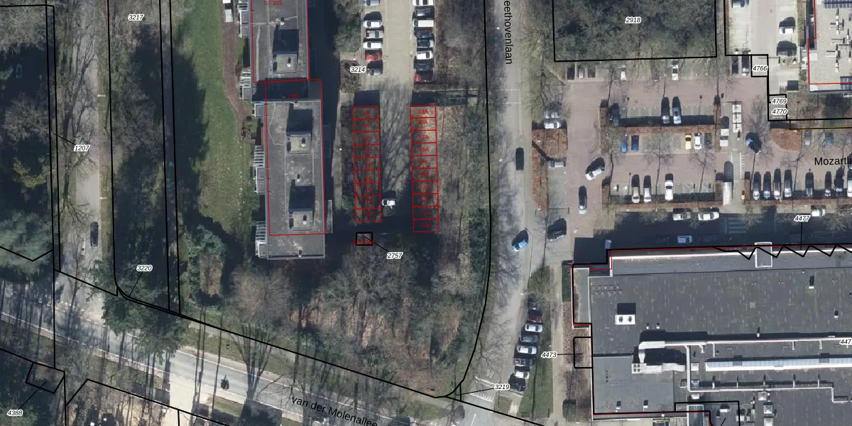 Het perceel waarop Beethovenlaan 11-A staat heeft een oppervlakte van 1,0 ha. Dit is een zeer groot perceel. De perceeloppervlakte wordt geregistreerd door het Kadaster. Gedetailleerde informatie over de maten van dit perceel kunt u vinden in het rapport Kadastrale kaart met maatvoering van Beethovenlaan 11-A.