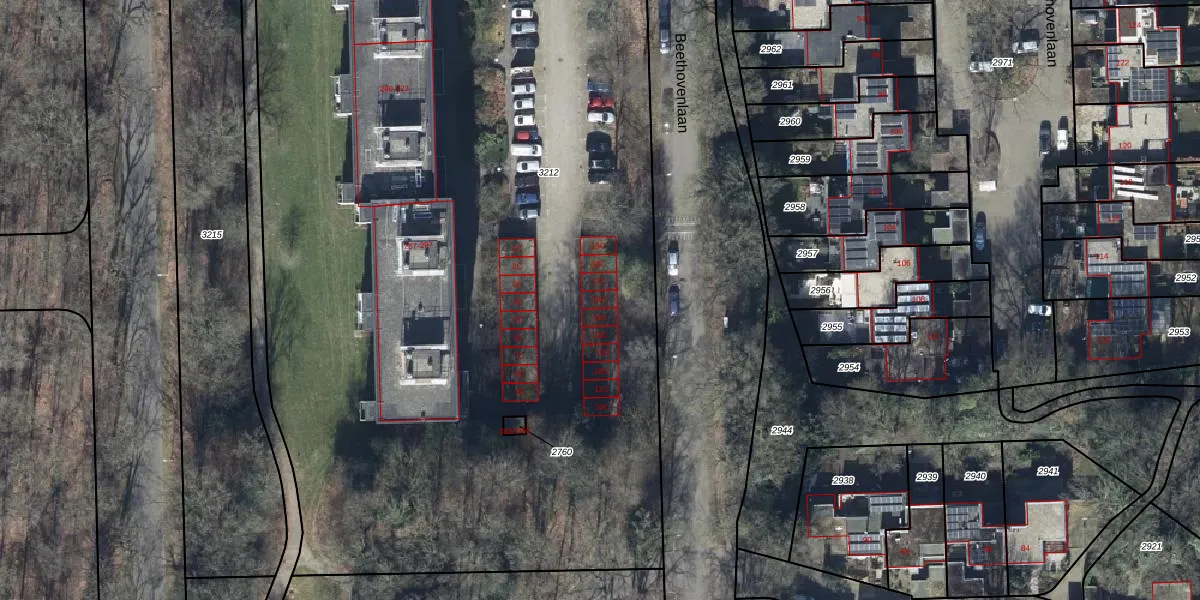 Het perceel waarop Beethovenlaan 16-C staat heeft een oppervlakte van 8820 m². Dit is een zeer groot perceel. De perceeloppervlakte wordt geregistreerd door het Kadaster. Gedetailleerde informatie over de maten van dit perceel kunt u vinden in het rapport Kadastrale kaart met maatvoering van Beethovenlaan 16-C.