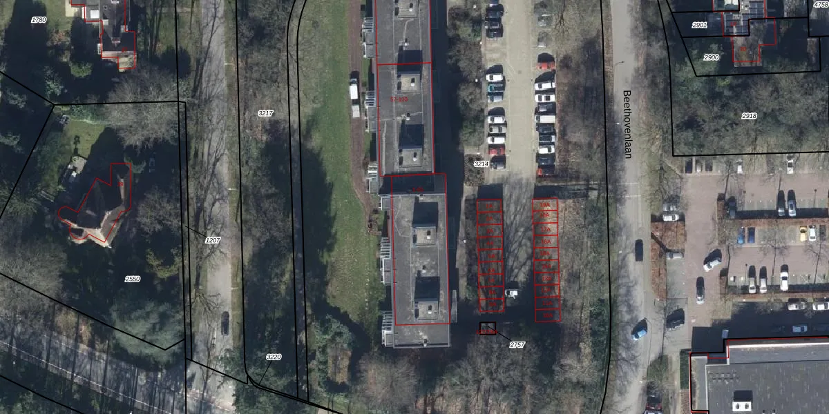 Het perceel waarop Beethovenlaan 23 staat heeft een oppervlakte van 1,0 ha. Dit is een zeer groot perceel. De perceeloppervlakte wordt geregistreerd door het Kadaster. Gedetailleerde informatie over de maten van dit perceel kunt u vinden in het rapport Kadastrale kaart met maatvoering van Beethovenlaan 23.