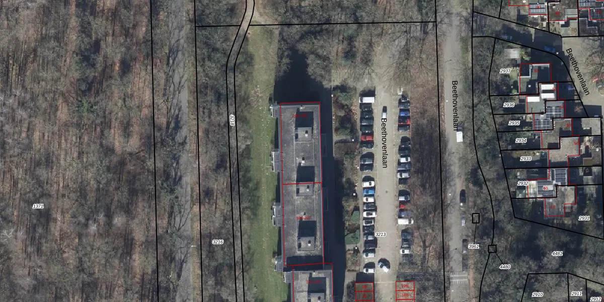 Het perceel waarop Beethovenlaan 235 staat heeft een oppervlakte van 9120 m². Dit is een zeer groot perceel. De perceeloppervlakte wordt geregistreerd door het Kadaster. Gedetailleerde informatie over de maten van dit perceel kunt u vinden in het rapport Kadastrale kaart met maatvoering van Beethovenlaan 235.