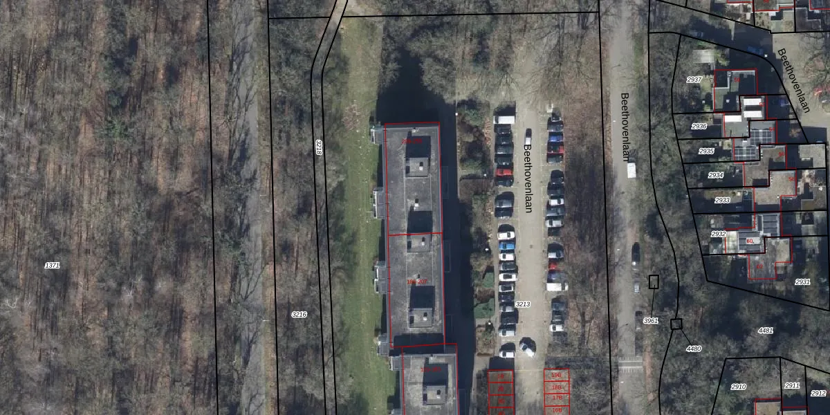 Het perceel waarop Beethovenlaan 247 staat heeft een oppervlakte van 9120 m². Dit is een zeer groot perceel. De perceeloppervlakte wordt geregistreerd door het Kadaster. Gedetailleerde informatie over de maten van dit perceel kunt u vinden in het rapport Kadastrale kaart met maatvoering van Beethovenlaan 247.