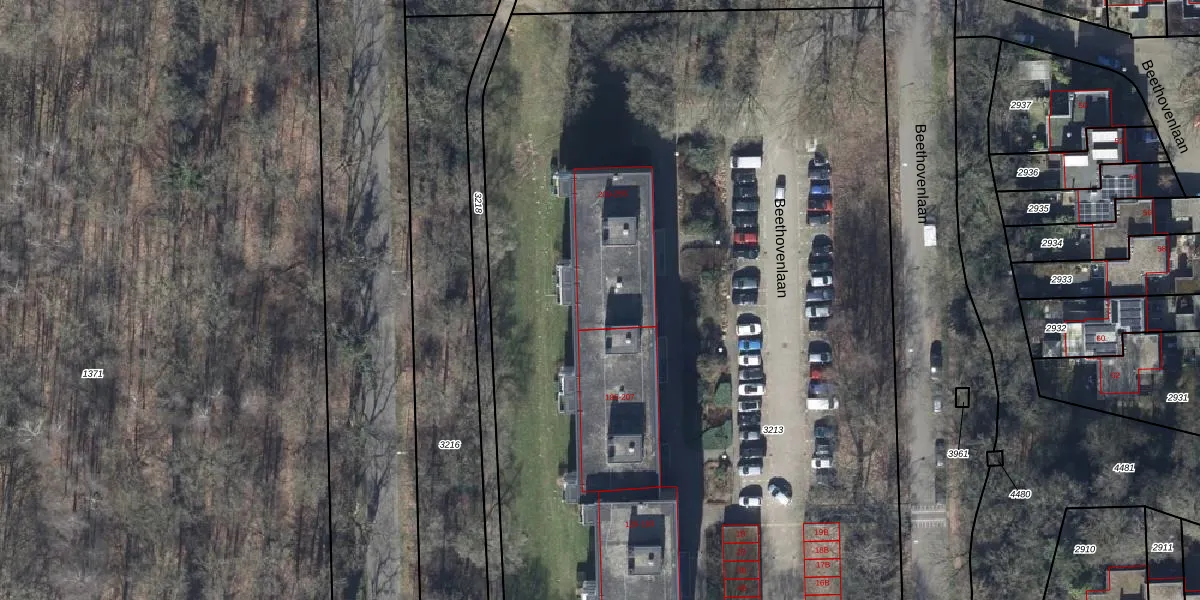 Het perceel waarop Beethovenlaan 249 staat heeft een oppervlakte van 9120 m². Dit is een zeer groot perceel. De perceeloppervlakte wordt geregistreerd door het Kadaster. Gedetailleerde informatie over de maten van dit perceel kunt u vinden in het rapport Kadastrale kaart met maatvoering van Beethovenlaan 249.