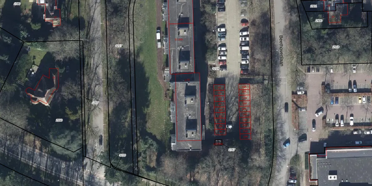 Het perceel waarop Beethovenlaan 35 staat heeft een oppervlakte van 1,0 ha. Dit is een zeer groot perceel. De perceeloppervlakte wordt geregistreerd door het Kadaster. Gedetailleerde informatie over de maten van dit perceel kunt u vinden in het rapport Kadastrale kaart met maatvoering van Beethovenlaan 35.