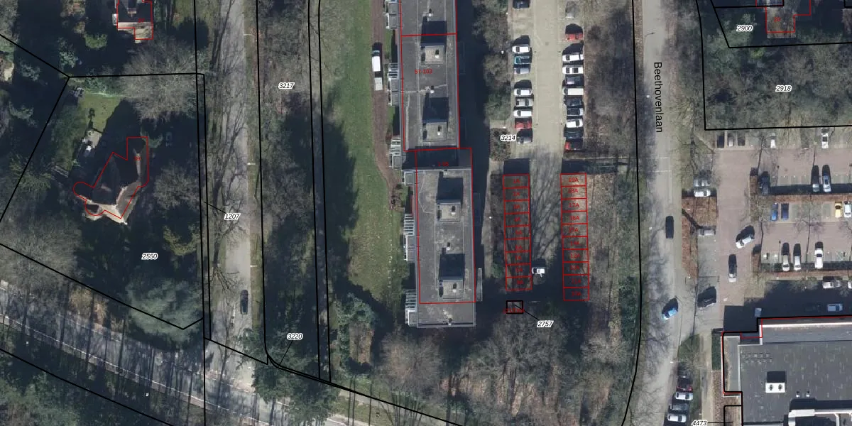 Het perceel waarop Beethovenlaan 55 staat heeft een oppervlakte van 1,0 ha. Dit is een zeer groot perceel. De perceeloppervlakte wordt geregistreerd door het Kadaster. Gedetailleerde informatie over de maten van dit perceel kunt u vinden in het rapport Kadastrale kaart met maatvoering van Beethovenlaan 55.