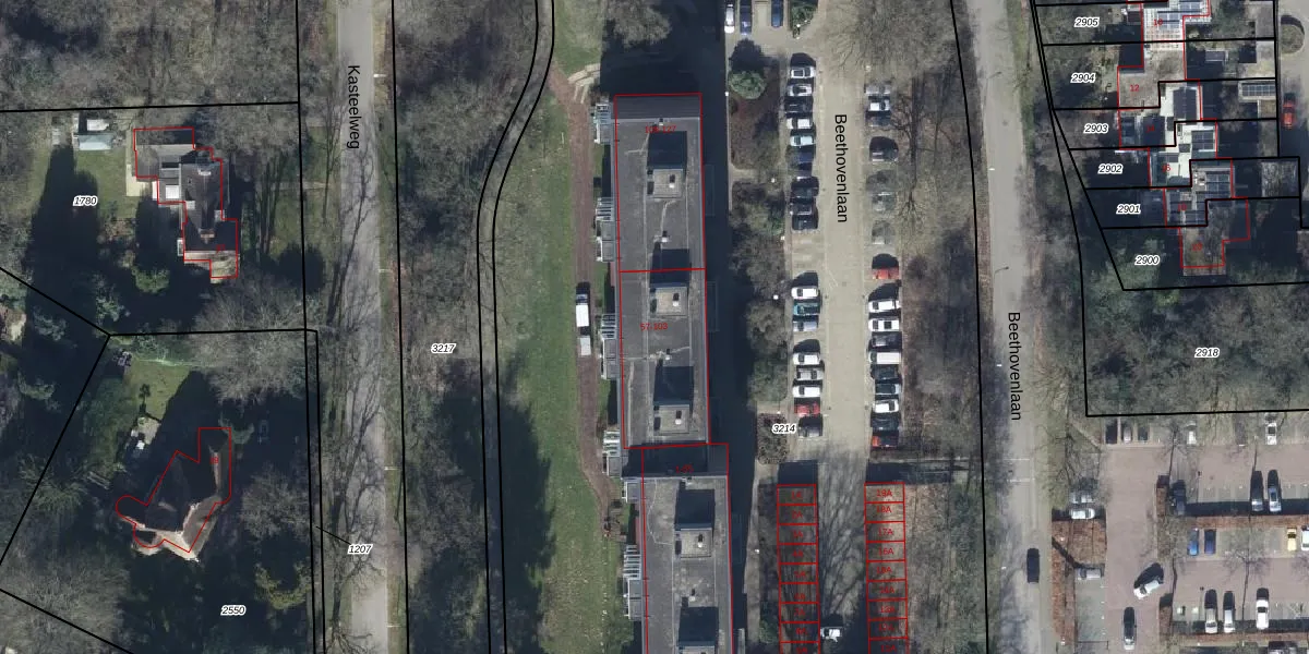 Het perceel waarop Beethovenlaan 61 staat heeft een oppervlakte van 1,0 ha. Dit is een zeer groot perceel. De perceeloppervlakte wordt geregistreerd door het Kadaster. Gedetailleerde informatie over de maten van dit perceel kunt u vinden in het rapport Kadastrale kaart met maatvoering van Beethovenlaan 61.