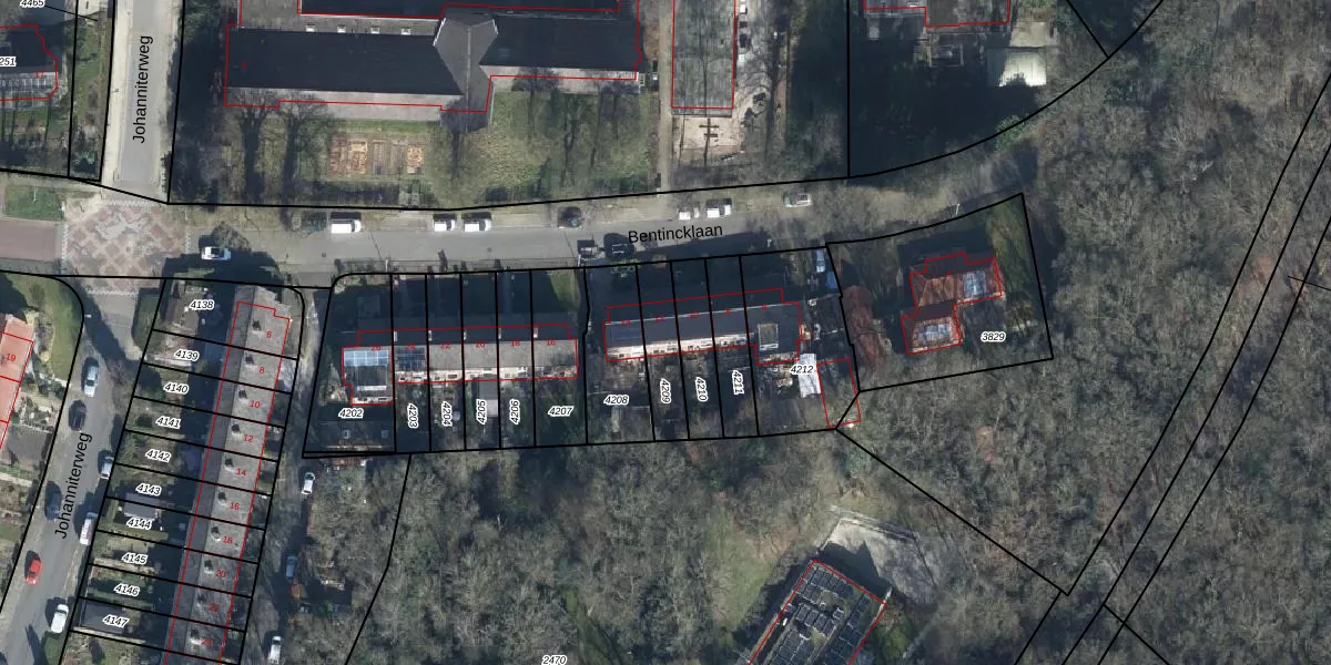 Gebruik de zoekbalk of klik op een perceel voor informatie over de adressen binnen dit perceel.