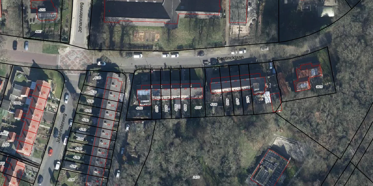 Gebruik de zoekbalk of klik op een perceel voor informatie over de adressen binnen dit perceel.