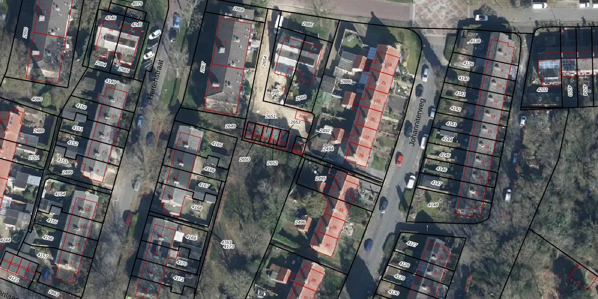 Gebruik de zoekbalk of klik op een perceel voor informatie over de adressen binnen dit perceel.