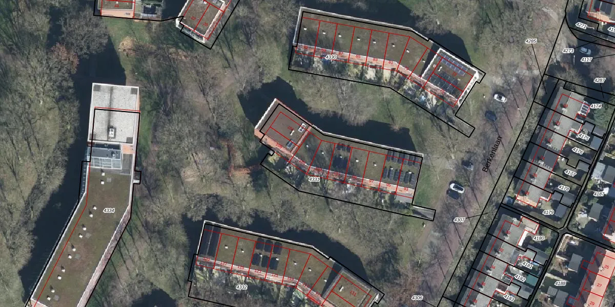 Het perceel waarop Berkenlaan 105 staat heeft een oppervlakte van 1045 m². Dit is een zeer groot perceel. De perceeloppervlakte wordt geregistreerd door het Kadaster. Gedetailleerde informatie over de maten van dit perceel kunt u vinden in het rapport Kadastrale kaart met maatvoering van Berkenlaan 105.