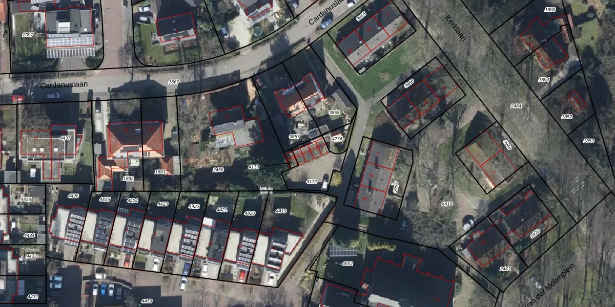 Cardanuslaan 3-GA is gelegen op kadastraal perceel DWH00C4114. Deze kadastrale aanduiding is uniek en wordt gebruikt door het Kadaster om eigendomsrechten en andere zakelijke rechten vast te leggen. Het perceel maakt onderdeel uit van de kadastrale gemeente Doorwerth.
