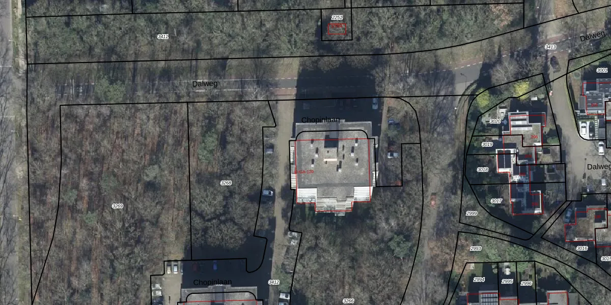 Het perceel waarop Chopinlaan 17-GA staat heeft een oppervlakte van 3330 m². Dit is een zeer groot perceel. De perceeloppervlakte wordt geregistreerd door het Kadaster. Gedetailleerde informatie over de maten van dit perceel kunt u vinden in het rapport Kadastrale kaart met maatvoering van Chopinlaan 17-GA.