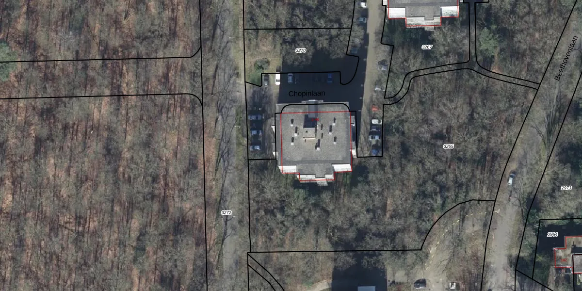 Het perceel waarop Chopinlaan 3-GA staat heeft een oppervlakte van 4230 m². Dit is een zeer groot perceel. De perceeloppervlakte wordt geregistreerd door het Kadaster. Gedetailleerde informatie over de maten van dit perceel kunt u vinden in het rapport Kadastrale kaart met maatvoering van Chopinlaan 3-GA.