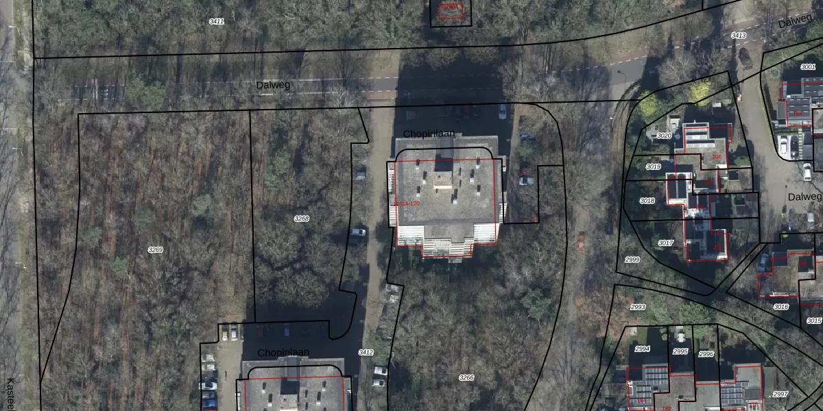 Het perceel waarop Chopinlaan 83 staat heeft een oppervlakte van 3330 m². Dit is een zeer groot perceel. De perceeloppervlakte wordt geregistreerd door het Kadaster. Gedetailleerde informatie over de maten van dit perceel kunt u vinden in het rapport Kadastrale kaart met maatvoering van Chopinlaan 83.