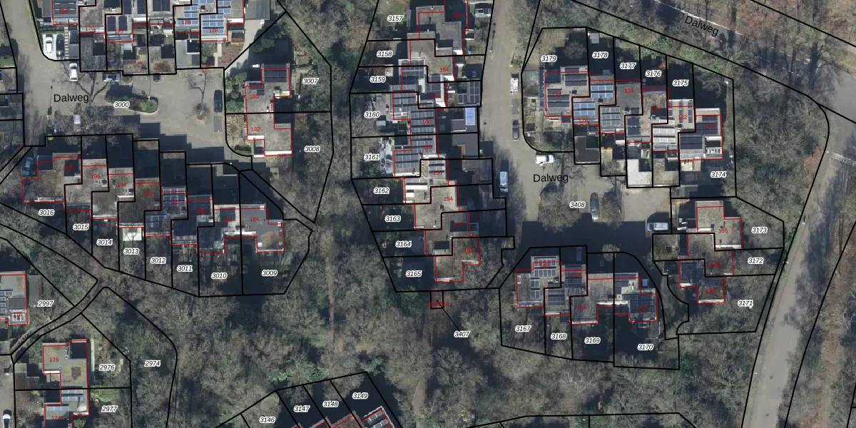 Gebruik de zoekbalk of klik op een perceel voor informatie over de adressen binnen dit perceel.