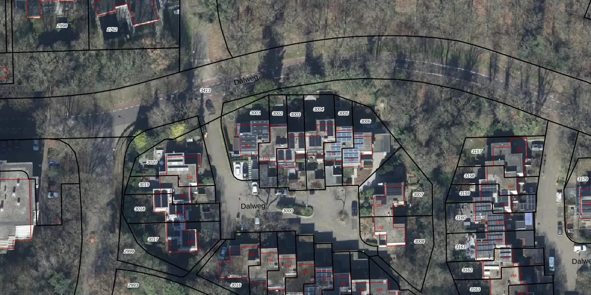 Gebruik de zoekbalk of klik op een perceel voor informatie over de adressen binnen dit perceel.