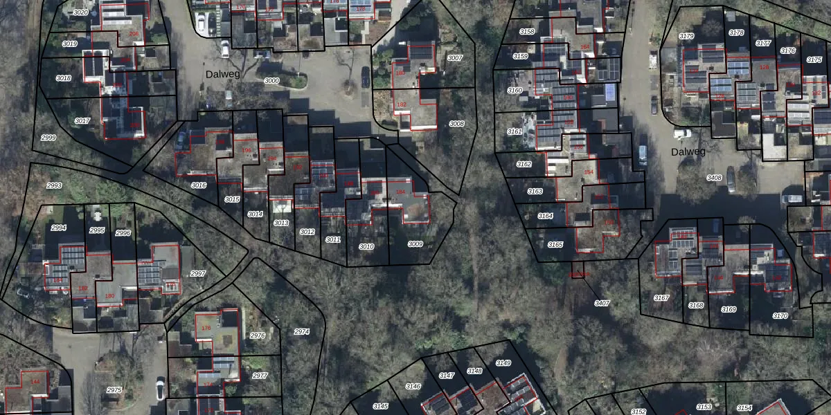 Het perceel waarop Dalweg 184 staat heeft een oppervlakte van 319 m². Dit is een groot perceel. De perceeloppervlakte wordt geregistreerd door het Kadaster. Gedetailleerde informatie over de maten van dit perceel kunt u vinden in het rapport Kadastrale kaart met maatvoering van Dalweg 184.
