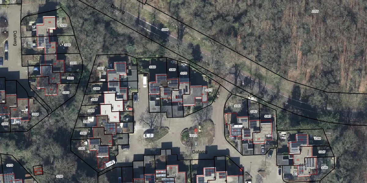 Het perceel waarop Dalweg 82 staat heeft een oppervlakte van 190 m². Dit is een middelgroot perceel. De perceeloppervlakte wordt geregistreerd door het Kadaster. Gedetailleerde informatie over de maten van dit perceel kunt u vinden in het rapport Kadastrale kaart met maatvoering van Dalweg 82.