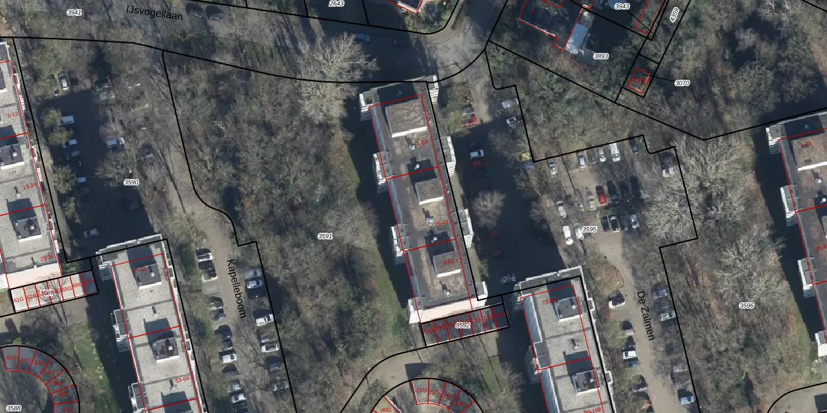 Het perceel waarop De Zalmen 39 staat heeft een oppervlakte van 3990 m². Dit is een zeer groot perceel. De perceeloppervlakte wordt geregistreerd door het Kadaster. Gedetailleerde informatie over de maten van dit perceel kunt u vinden in het rapport Kadastrale kaart met maatvoering van De Zalmen 39.