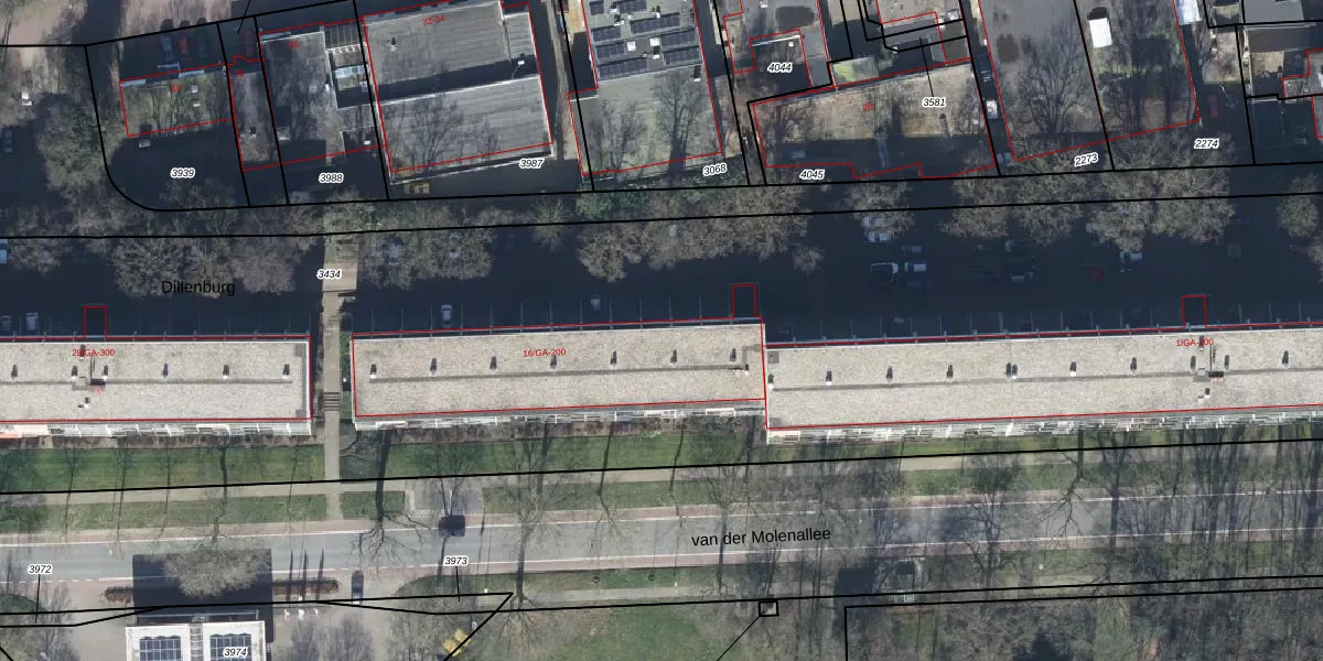 Het perceel waarop Dillenburg 186 staat heeft een oppervlakte van 1,3 ha. Dit is een zeer groot perceel. De perceeloppervlakte wordt geregistreerd door het Kadaster. Gedetailleerde informatie over de maten van dit perceel kunt u vinden in het rapport Kadastrale kaart met maatvoering van Dillenburg 186.
