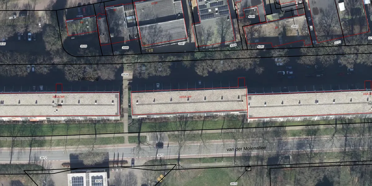 Het perceel waarop Dillenburg 196 staat heeft een oppervlakte van 1,3 ha. Dit is een zeer groot perceel. De perceeloppervlakte wordt geregistreerd door het Kadaster. Gedetailleerde informatie over de maten van dit perceel kunt u vinden in het rapport Kadastrale kaart met maatvoering van Dillenburg 196.