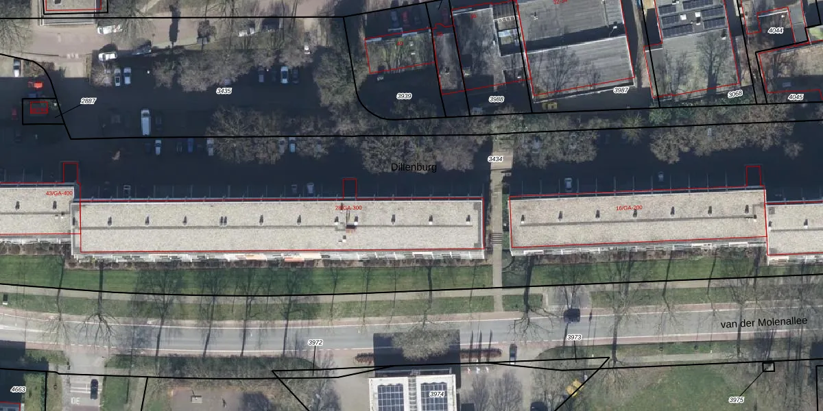 Het perceel waarop Dillenburg 240 staat heeft een oppervlakte van 1,3 ha. Dit is een zeer groot perceel. De perceeloppervlakte wordt geregistreerd door het Kadaster. Gedetailleerde informatie over de maten van dit perceel kunt u vinden in het rapport Kadastrale kaart met maatvoering van Dillenburg 240.