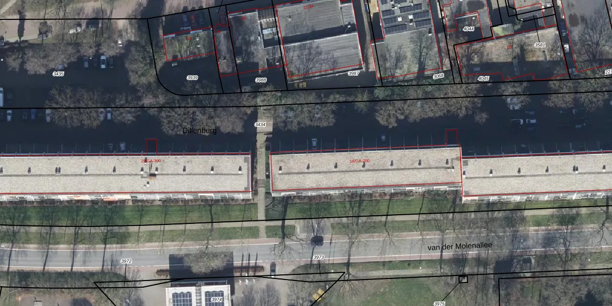 Dillenburg 25-GA is gelegen op kadastraal perceel DWH00C3434. Deze kadastrale aanduiding is uniek en wordt gebruikt door het Kadaster om eigendomsrechten en andere zakelijke rechten vast te leggen. Het perceel maakt onderdeel uit van de kadastrale gemeente Doorwerth.