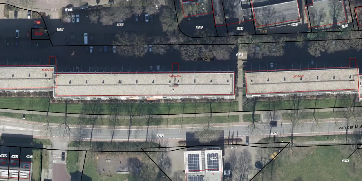 Het perceel waarop Dillenburg 266 staat heeft een oppervlakte van 1,3 ha. Dit is een zeer groot perceel. De perceeloppervlakte wordt geregistreerd door het Kadaster. Gedetailleerde informatie over de maten van dit perceel kunt u vinden in het rapport Kadastrale kaart met maatvoering van Dillenburg 266.