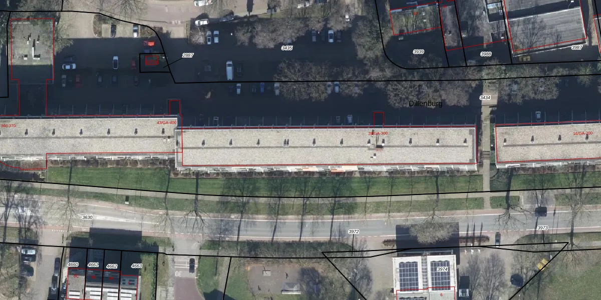 Het perceel waarop Dillenburg 278 staat heeft een oppervlakte van 1,3 ha. Dit is een zeer groot perceel. De perceeloppervlakte wordt geregistreerd door het Kadaster. Gedetailleerde informatie over de maten van dit perceel kunt u vinden in het rapport Kadastrale kaart met maatvoering van Dillenburg 278.