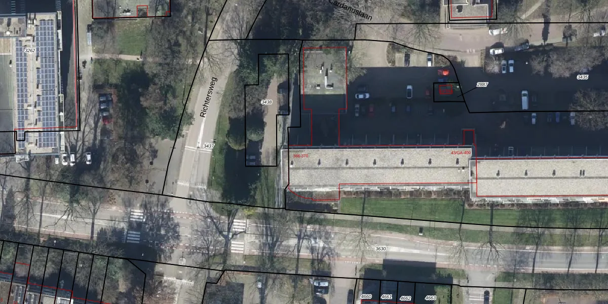 Het adres ligt op het perceel DWH00-C-3434, dat zich in de kadastrale gemeente Doorwerth bevindt. De oppervlakte van het perceel is 1,3 ha. Dat is groter dan gemiddeld in Doorwerth, waar de gemiddelde perceeloppervlakte op 6251,27 m² ligt. Het grootste perceel in de kadastrale gemeente is 80,8 ha. Het kleinste perceel heeft een oppervlakte van 0 m². Op het perceel liggen in totaal 254 adressen. De laatste wijziging in het de Basisregistratie Kadaster (BRK) was op 18-02-2002.