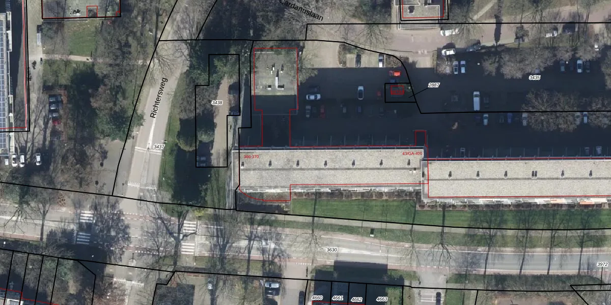 Het adres ligt op het perceel DWH00-C-3434, dat zich in de kadastrale gemeente Doorwerth bevindt. De oppervlakte van het perceel is 1,3 ha. Dat is groter dan gemiddeld in Doorwerth, waar de gemiddelde perceeloppervlakte op 6251,27 m² ligt. Het kleinste perceel in de kadastrale gemeente is 0 m² groot. De grootste perceeloppervlakte is 80,8 ha. Op het perceel zijn 254 adressen aanwezig. De huidige grenzen van het perceel zijn digitaal in de Basisregistratie Kadaster (BRK) geregistreerd op 18-02-2002.