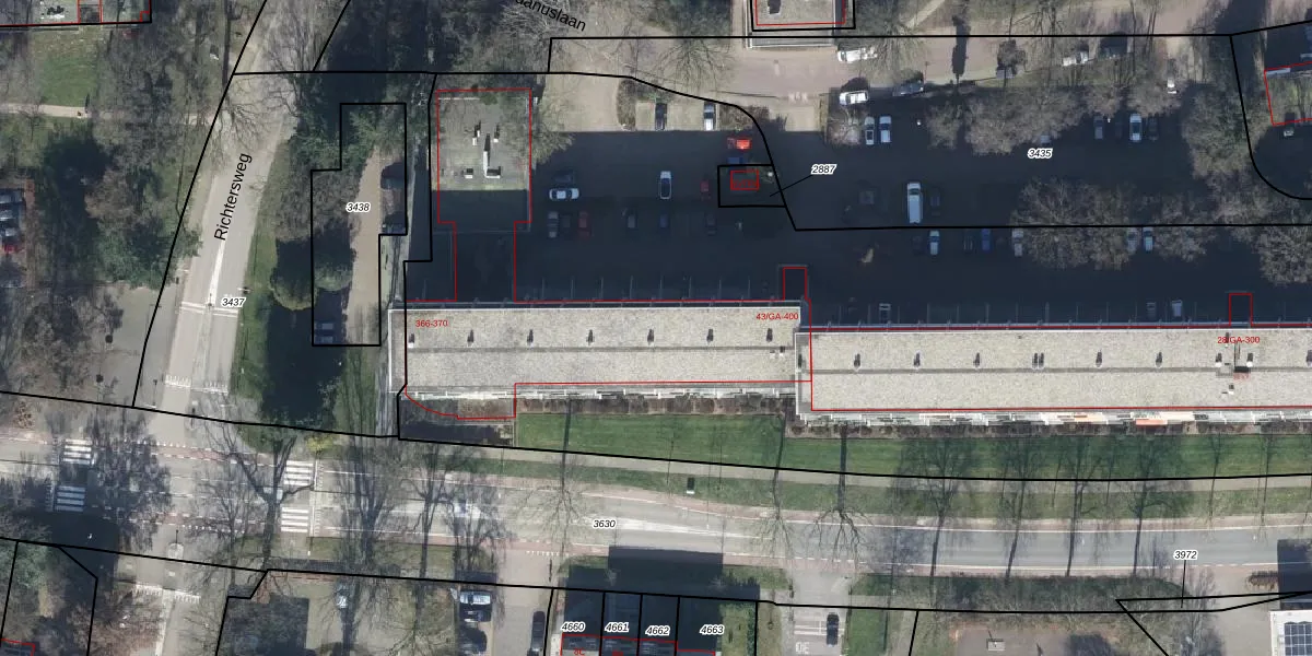 Het adres ligt op het perceel DWH00-C-3434, dat zich in de kadastrale gemeente Doorwerth bevindt. De oppervlakte van het perceel is 1,3 ha. Dat is groter dan gemiddeld in Doorwerth, waar de gemiddelde perceeloppervlakte op 6251,27 m² ligt. Het kleinste perceel in de kadastrale gemeente is 0 m² groot. De grootste perceeloppervlakte is 80,8 ha. Er zijn 254 adressen aanwezig op het perceel. In de Basisregistratie Kadaster (BRK) werden de grenzen van het perceel geregistreerd op 18-02-2002.