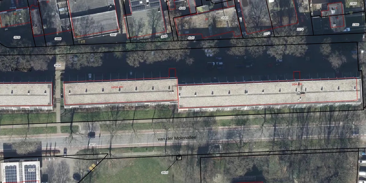 Het perceel waarop Dillenburg 52 staat heeft een oppervlakte van 1,3 ha. Dit is een zeer groot perceel. De perceeloppervlakte wordt geregistreerd door het Kadaster. Gedetailleerde informatie over de maten van dit perceel kunt u vinden in het rapport Kadastrale kaart met maatvoering van Dillenburg 52.