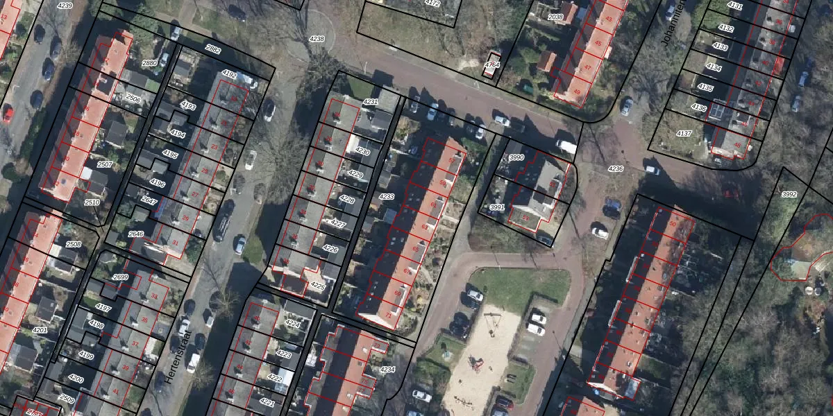 Het perceel waarop Johanniterweg 61 staat heeft een oppervlakte van 1193 m². Dit is een zeer groot perceel. De perceeloppervlakte wordt geregistreerd door het Kadaster. Gedetailleerde informatie over de maten van dit perceel kunt u vinden in het rapport Kadastrale kaart met maatvoering van Johanniterweg 61.