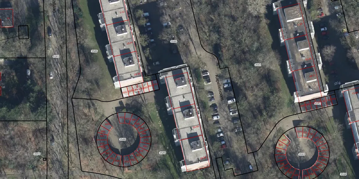 Het perceel waarop Kapelleboom 47 staat heeft een oppervlakte van 2955 m². Dit is een zeer groot perceel. De perceeloppervlakte wordt geregistreerd door het Kadaster. Gedetailleerde informatie over de maten van dit perceel kunt u vinden in het rapport Kadastrale kaart met maatvoering van Kapelleboom 47.