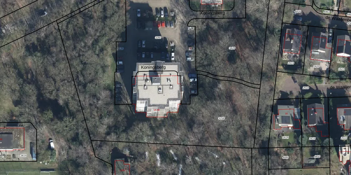 Koningsberg 1-B is gelegen op kadastraal perceel DWH00C3258. Deze kadastrale aanduiding is uniek en wordt gebruikt door het Kadaster om eigendomsrechten en andere zakelijke rechten vast te leggen. Het perceel maakt onderdeel uit van de kadastrale gemeente Doorwerth.