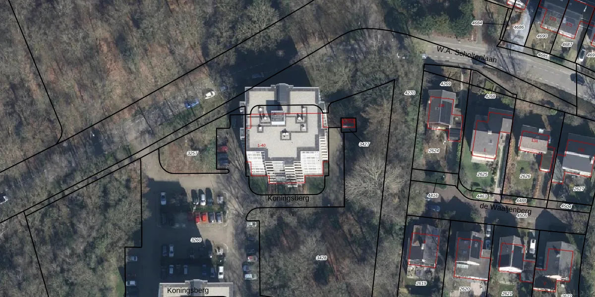 Het perceel waarop Koningsberg 23 staat heeft een oppervlakte van 2720 m². Dit is een zeer groot perceel. De perceeloppervlakte wordt geregistreerd door het Kadaster. Gedetailleerde informatie over de maten van dit perceel kunt u vinden in het rapport Kadastrale kaart met maatvoering van Koningsberg 23.