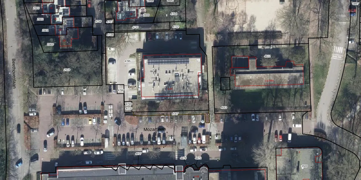 Het perceel waarop Mozartlaan 7 staat heeft een oppervlakte van 2241 m². Dit is een zeer groot perceel. De perceeloppervlakte wordt geregistreerd door het Kadaster. Gedetailleerde informatie over de maten van dit perceel kunt u vinden in het rapport Kadastrale kaart met maatvoering van Mozartlaan 7.