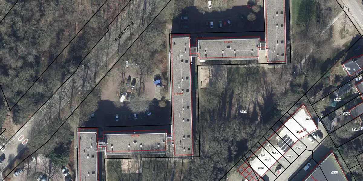 Het perceel waarop Richtersweg 146 staat heeft een oppervlakte van 5970 m². Dit is een zeer groot perceel. De perceeloppervlakte wordt geregistreerd door het Kadaster. Gedetailleerde informatie over de maten van dit perceel kunt u vinden in het rapport Kadastrale kaart met maatvoering van Richtersweg 146.