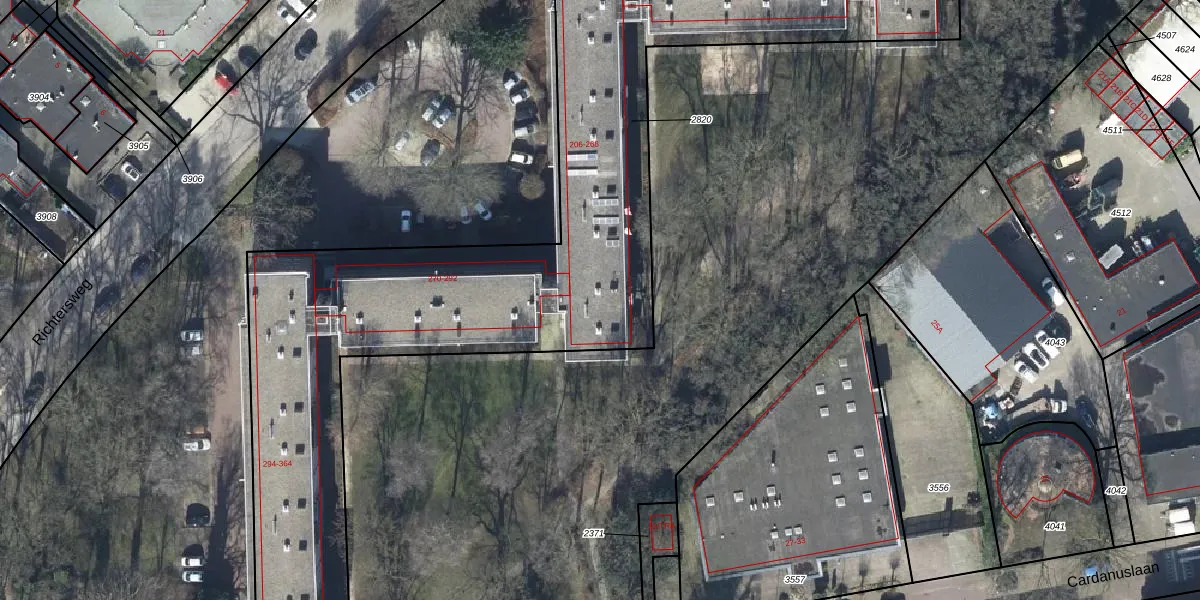 Het perceel waarop Richtersweg 264 staat heeft een oppervlakte van 5970 m². Dit is een zeer groot perceel. De perceeloppervlakte wordt geregistreerd door het Kadaster. Gedetailleerde informatie over de maten van dit perceel kunt u vinden in het rapport Kadastrale kaart met maatvoering van Richtersweg 264.