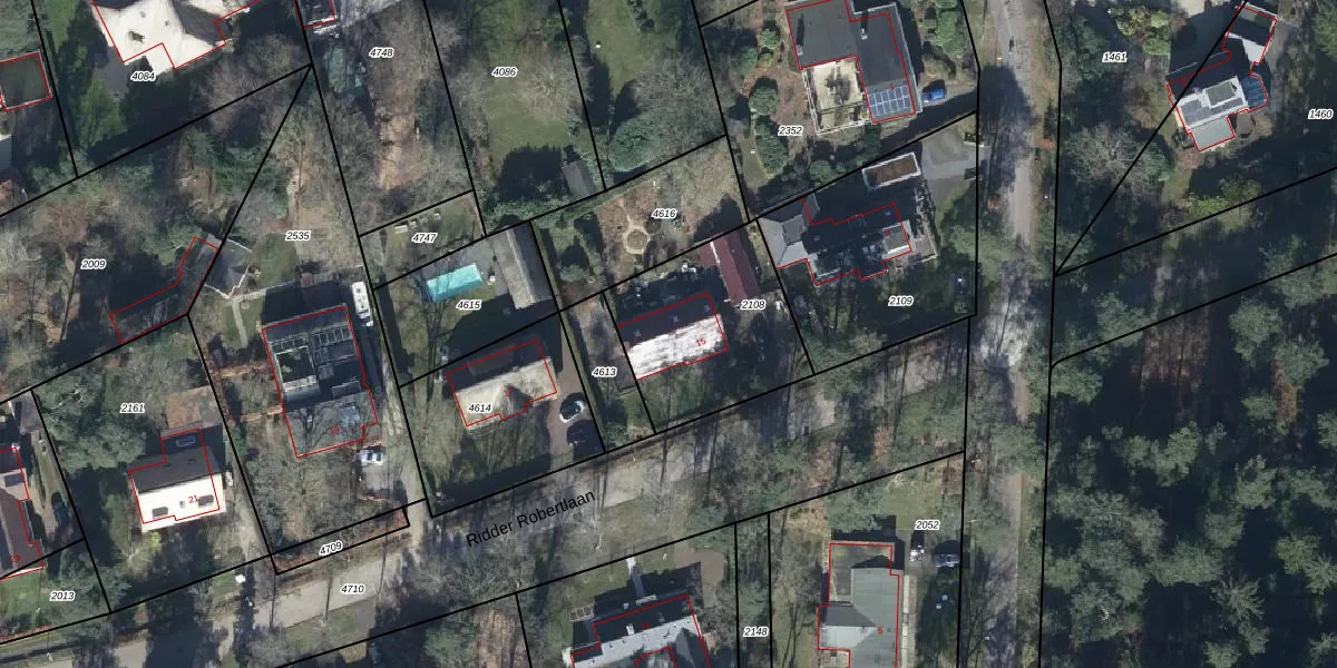 Het perceel waarop Ridder Robertlaan 15 staat heeft een oppervlakte van 608 m². Dit is een groot perceel. De perceeloppervlakte wordt geregistreerd door het Kadaster. Gedetailleerde informatie over de maten van dit perceel kunt u vinden in het rapport Kadastrale kaart met maatvoering van Ridder Robertlaan 15.